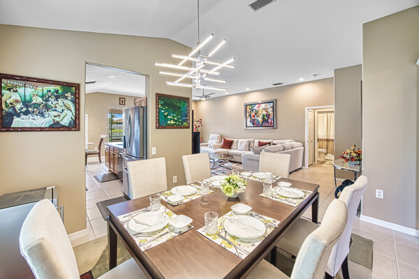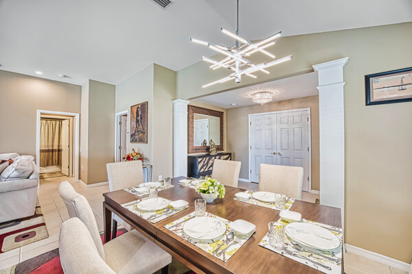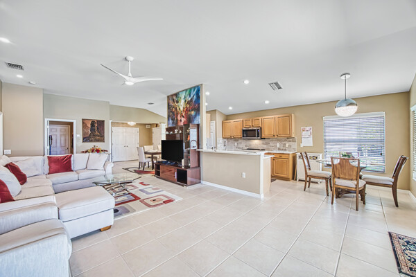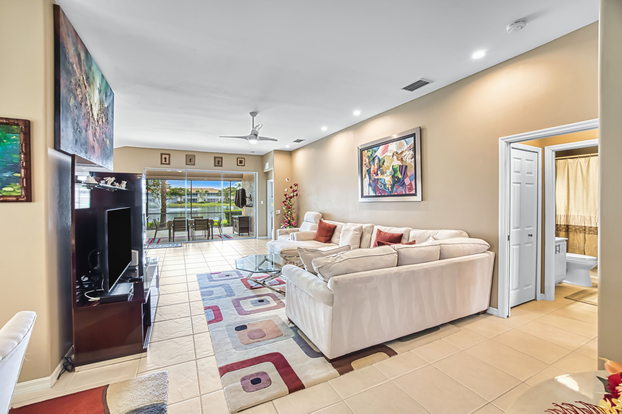 you play golf and a top-notch tennis program. The volume ceilings add a touch of elegance to the space, while the proximity to pickleball