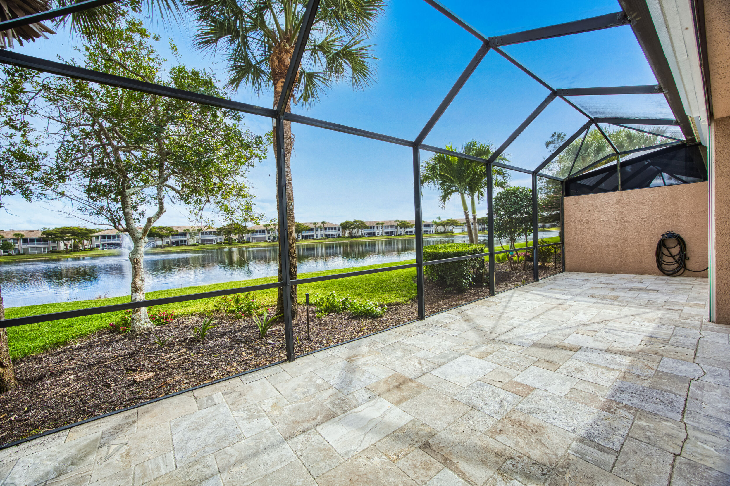 Welcome to your dream condo in the prestigious Colonial Country Club! This stunning SPOONBILL Model boasts 2 bedrooms plus Large Den, 2 bathrooms, and a 1 car garage, providing ample space for comfortable living. This Carriage home has a Social Membership so no need to pay extra Golf Master HOA Fees. Stunning Water Views from the Large Lanai for Relaxing and Entertaining