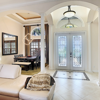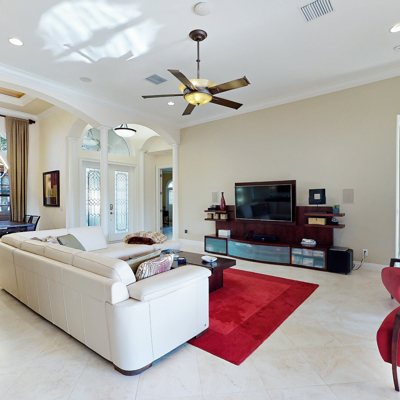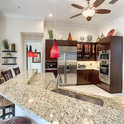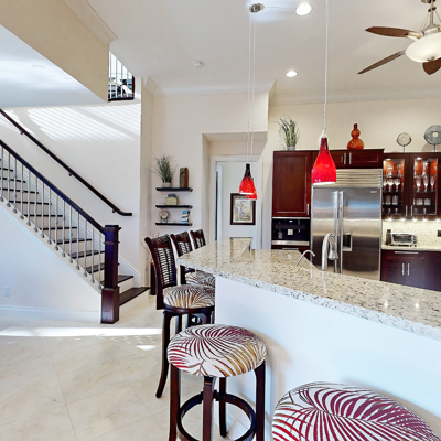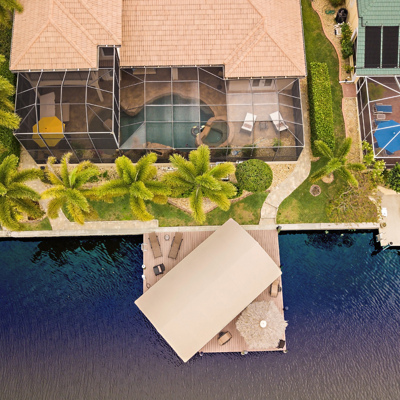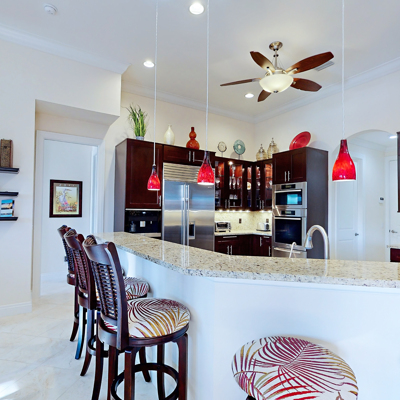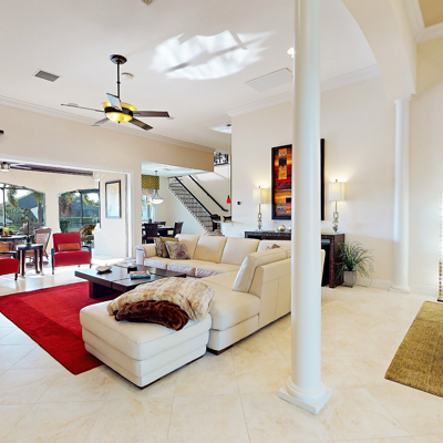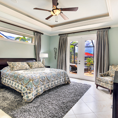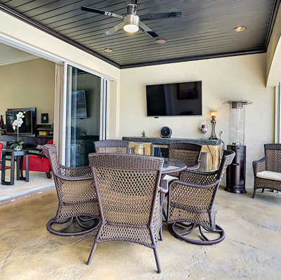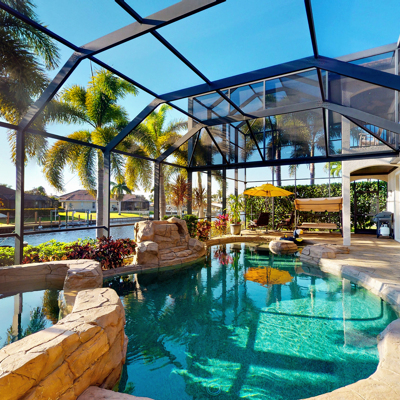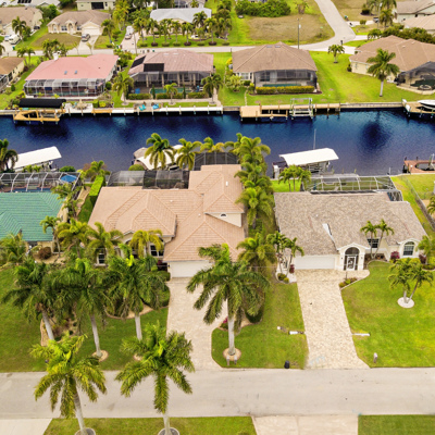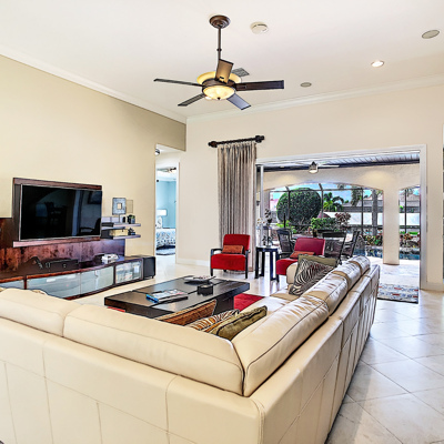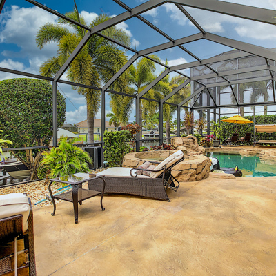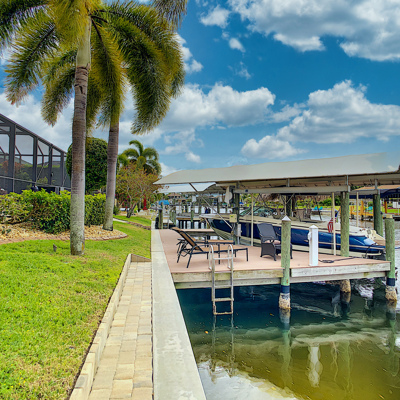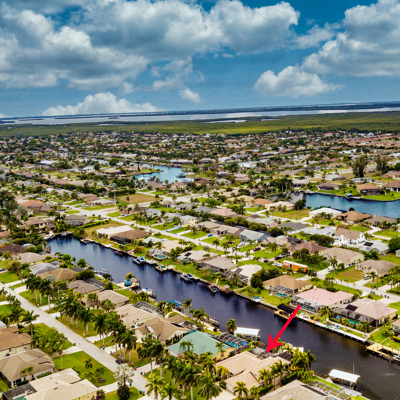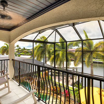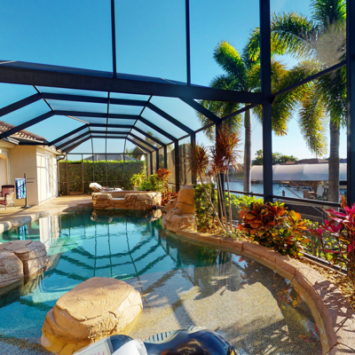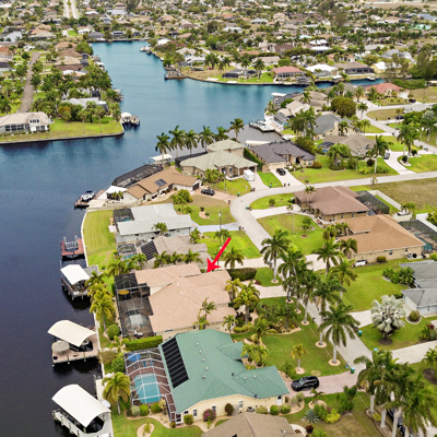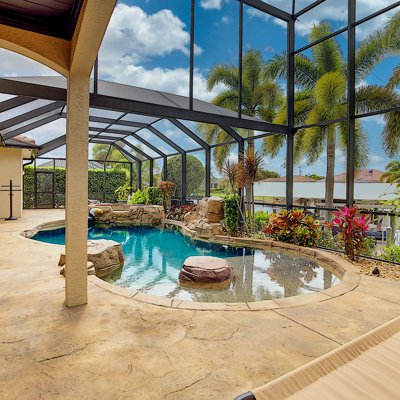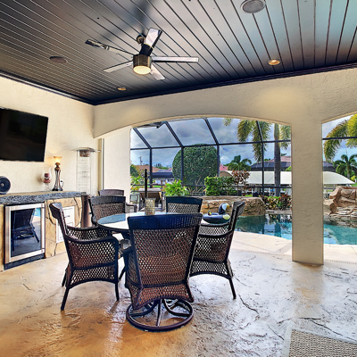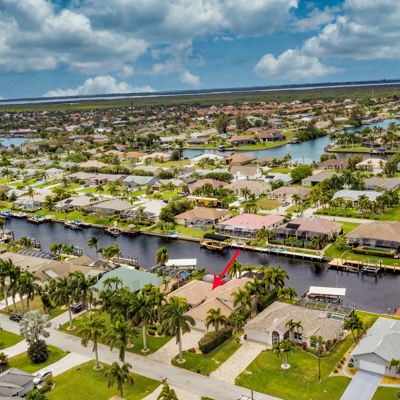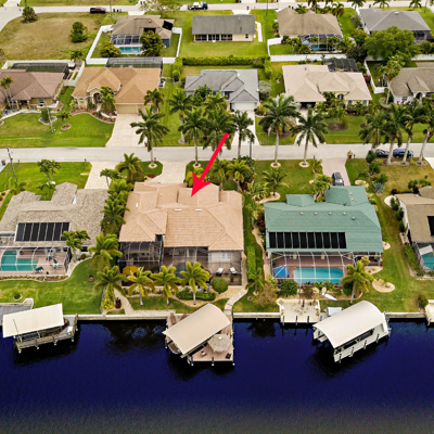 Perfection at it's finest. You will be wowed when you drive up to this home, entering through the front door you will be greeted with an open floor plan that looks through to the lanai and pool area with water views. Purposely landscaped and upgraded to promote both comfortable and functional spaces inside and out. This 5 Bed/3.5 bath home is professionally designed and decorated with upgrades galore! The kitchen has high-end Miele appliances, double ovens, built-in coffee station, cook-top, warming tray, subzero refrigerator and custom cabinetry. The relaxing living area overlooks the zen-like lanai with an outdoor kitchen, speakers, pool, custom waterfall, spa and pool bath. The master bedroom has large double doors opening to the pool area with an outdoor sitting area to relax and enjoy a night cap before retreating for the evening. Upstairs living area with wine bar, bedroom and bath with a screened balcony overlooking the pool and awesome water view of the intersecting canal. A great area to enjoy the breathtaking Florida Sunsets! Turnkey, Move right in. Tap on the 3D tour, let your fingers do the walking to see the fine qualities of this home and call for an appointment!