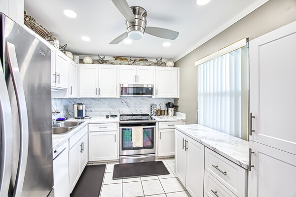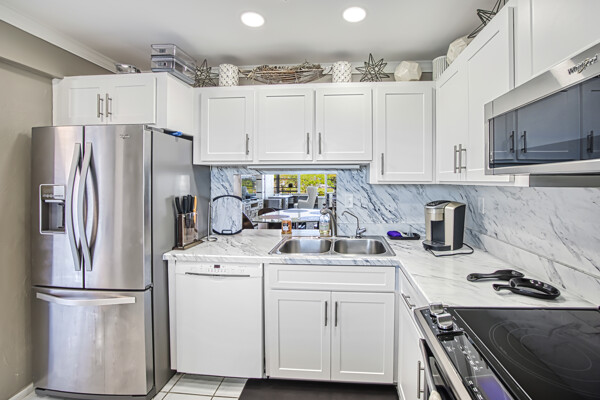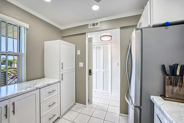 Unpack and move in completely remodeled 2 bedroom 2 bath Greenbriar model- kitchen boasts stainless steel appliances, plenty of cabinet and counter space with granite counter tops, recessed lighting-Custom mirrors in dining room- Owners suite has separate dressing area with raised vanity - tiled walk in shower- Impact windows throughout- Extended living room offers an office area with golf course views overlooking the 5th green with stunning sunsets. Bonus electric shutters on lanai windows and extra storage closet. Extra storage as well outside unit. Plenty of closet space in both bedrooms!!! UNIT BEING SOLD TURNKEY WITH CARPORT SPACE #2 & GOLF CART SPACE #G ( A 15,000+ VALUE). A/C and Water Heater 2018. A true bundled 55+ active golf and tennis community. NO TRANFER, GREEN OR TRAIL FEES. 18 hole executive golf course. 6 heated pools, tennis pavilion, bocce, pickle ball, wood shop, on site restaurant with no minimum, bus trips, card rooms, trivia, karaoke, bingo, socials, dances, fitness center and so much more. Conveniently located across from Bell Tower Shops, dining, RSW Airport, Barbara B Mann, FSU College. Minutes to Downtown and beaches. A Tour of the community is well worth your time.