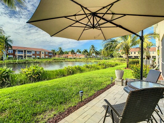 LAKEFRONT Beauty! 3 Bedroom, 2.5 bath "smart home" townhome with a one car garage, immaculately maintained with beautiful fountain views! Sip your morning coffee on your extended pavered patio, then enjoy a cold beverage watching the beautiful sunsets from your screened lanai and be mesmerized as the beautiful fountain in front of you comes alive in color and light as the evening sets in! Newer Built in 2019, this gem features high ceilings, crown molding, diagonal tile, an open kitchen with 42" wood cabinets, granite, stainless appliances & a breakfast bar overlooking the great room and lake! Upstairs bedrooms feature a large master with a desk/dresser insert & double closets, two guest bedrooms, two full bathrooms with wood vanities & chrome fixtures, and the washer & dryer are conveniently located upstairs for easy access. Marbella at Cypress features a resort style pool, a beautiful clubhouse with a party/social room, movie theatre, fitness room, showers, locker rooms, sauna, billiards/game room and a work area with convenient wifi. Conveniently located within walking distance to restaurants and shopping and minutes to I75, you have found your new Southwest Florida home!