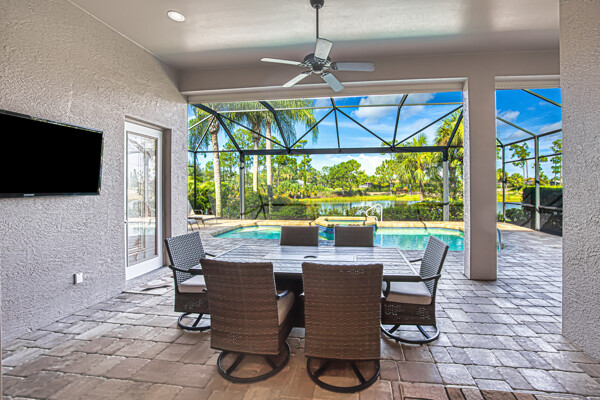 Offering spectacular Country Club living at it's finest in this Crowining Jewel Caymen Model Home Totally Updated in Colonial Country Club!! This home is Move in Ready and Spotless!! FULL GOLF MEMBERSHIP INCLUDED!! Owners will love the Paved Lanai with Picture Window Screen with Views of the Newly Renovated Golf Course, including a Gas Firepit Table and Updated Salt Water Pool and Spa with Aqualink controlled (iterior panel and WI/FI) with Gas Heater and Solar Heat including new Jandy vatiable speed pump (2024). Freshly painted exterior as well as REPLACED ROOF!! Rear Lanai Electric Hurricane Shutters with accordians on all other openings and Insulated Garage Door for Safety and Security. Enter this Magnificent Single Story Home through the double Cut Glass Doors to an Open Concept Living Area and Remodeled Chef's Kitchen, UPGRADED CABINETRY, Stainless Appliances, wine frige and a Custom Range Hood!! Living Area has a Large TV and Fireplace (changes colors) Custom Lighting and Surround Sound system plus a separate in-house multi-room Sound System!! Neutral New Flooring throughout the Home! Power Shade in the Master Bedroom as well as Custom Closets. Primary Bathroom Includes Large Walk in Shower and Guest Bathroom have both been removated with High End Finishes!! "Smart" Thermostat, hot water heater, washer, garage door opener (with battery backup), pool controler, fireplace and ring camera. This Home Feels like a High End Retreat weather you are Outside Enjoying Entertaining Friends, Relaxing Inside watching your favorite Sports or preparing meals in the Fabulous Kitchen!! Short walk to the Clubhouse, Golf, Tennis, Bocce, and Amenities Center. Colonial Country Club has a great location close to I75, Airport, Shopping and Restaurants! . The award-wining Colonial Country Club offers resort-style living with amenities like bundled golf, tennis, pickleball, a fitness center, nature preserve walking trails and bocce ball there is truly something for everyone. The renovated restaurant and bar offer delicious cuisine and a place to socialize with friends and neighbors. Don't miss out on this incredible opportunity to own a piece of paradise in Colonial Country Club! Colonial Country Club has won the Distinguished Club Award As one of only two clubs in Fort Myers and in the top 4% of clubs globally, Colonial proudly upholds the esteemed Distinguished Club Award, a testament to our steadfast dedication to excellence in service, facilities, and the overall member experience. Handpicked through a meticulous evaluation process by BoardRoom magazine's industry specialists, this award solidifies our standing among the world's most esteemed private clubs. A Distinguished Club represents the pinnacle of exclusivity, reserved for a select few establishments that deliver an unparalleled Member Experience, setting them apart as the finest in the world!!!
