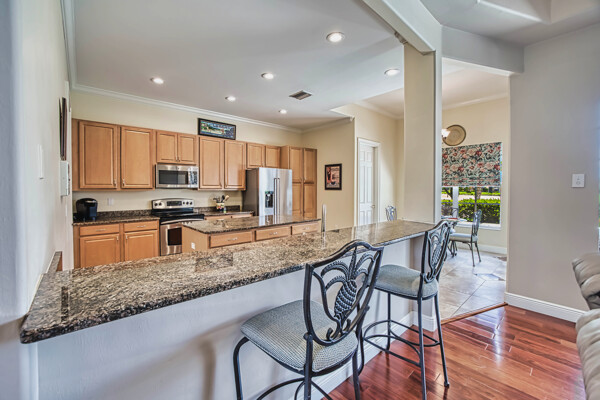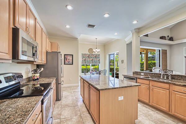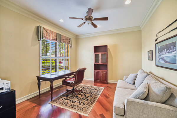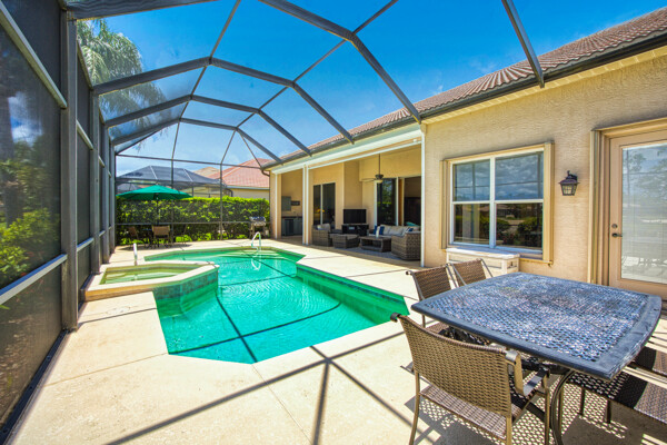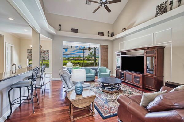 Welcome to your dream home in the prestigious Colonial Country Club! This stunning single family home boasts 3 bedrooms, 2.5 bathrooms, and a plethora of luxurious features that will make you never want to leave. This home comes with a FULL GOLF MEMBERSHIP to a Gordon Lewis designed championship golf course which is being renovated so you will have a brand new golf course in December. Reciprocals are set up for play through November. Step inside and be greeted by custom tile and elegant mahogany floors creating a warm and inviting atmosphere throughout. The gourmet kitchen is a chef's delight, with granite counters, stainless steel appliances, and a newer refrigerator and garbage disposal. The spacious office provides the perfect space for working from home or unwinding with a good book. The real showstopper of this home is the in-ground pool with spa that overlooks the 10th hole, perfect for relaxing and entertaining guests year-round. With newer accordion and electric hurricane shutters, Aqua Pod pool control, a newer air conditioning compressor and hot water heater, and a newer pool heater, you can rest easy knowing that this home is not only beautiful but also well-maintained and ready for you to move in and start enjoying the Florida lifestyle .The award-winning Colonial Country Club offers resort-style living with amenities like bundled golf, tennis, pickleball, a fitness center, miles of walking trails and bocce ball. The on-site restaurant and bar offers a place to socialize with friends and neighbors. Don't miss out on this incredible opportunity to own a piece of paradise in Colonial Country Club!